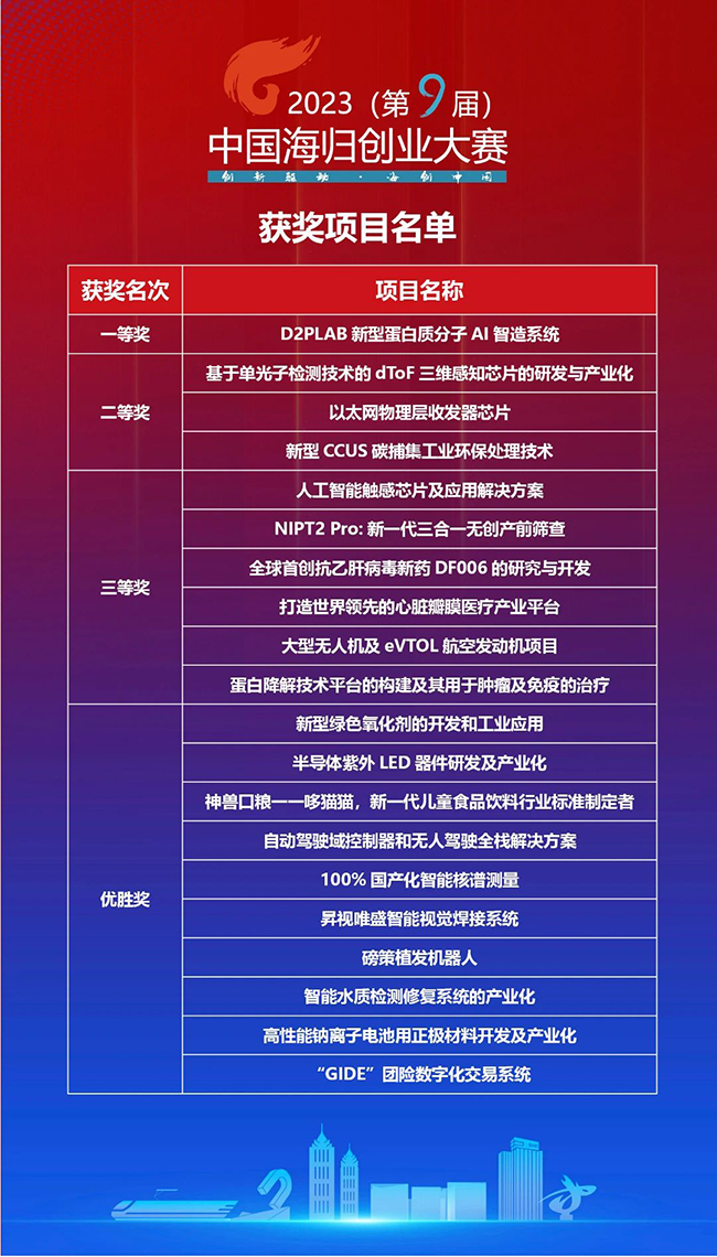 復賽項目按照行業分組進行路演,由來自啟迪創投、華軟資本、晟唐創投、中信建投、寅宜投資、北汽投資、杉杉創投、民生證券等機構的35位資深投資人組成評委團,從團隊、技術、市場、財務四個維度進行評審打分,確定20個項目晉級決賽。在決賽中,由來自中泰證券、財通創新、創客幫投資、蘇高新創投、華鍔投資、乾融控股、毅達資本的7位專業評委對晉級項目作出最后評定。最終,“D2PLAB新型蛋白質分子AI智造系統”項目奪得桂冠,“基于單光子檢測技術的dToF三維感知芯片的研發與產業化”“以太網物理層收發器芯片”“新型CCUS碳捕集工業環保處理技術”3個項目獲得二等獎,“人工智能觸感芯片及應用解決方案”等6個項目獲得三等獎,另有10個項目獲得優勝獎。