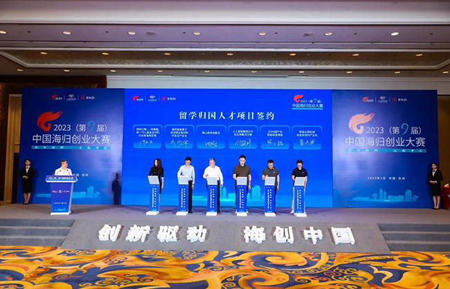 在大賽頒獎典禮上,全國政協常委、港澳臺僑委員會副主任、致公黨中央副主席兼秘書長盧國懿出席并講話。他指出,留學回國人員是實施國家重大戰略、實現高水平科技自立自強、為高質量發展注入新動能的有生力量。中國海歸創業大賽對留學人員回國創新創業具有顯著帶動和示范作用,希望大賽能繼續堅持服務宗旨,通過機制創新、資源拓展和服務延伸,成為吸引海外留學人員回國創新創業的強力“磁場”,激起人才干事創業的“一池活水”。希望參賽留學人員團隊能將自身所長和國家所需緊密結合,砥礪強國之志,實踐報國之行,創造出更多成果,向世界展示中國科創力量??萍疾俊⒔逃?、致公黨中央以及江蘇省、蘇州市有關部門領導為獲獎項目頒發了獎杯、獎金和證書?,F場還舉行了“海創中國智庫”揭牌儀式和項目簽約儀式。