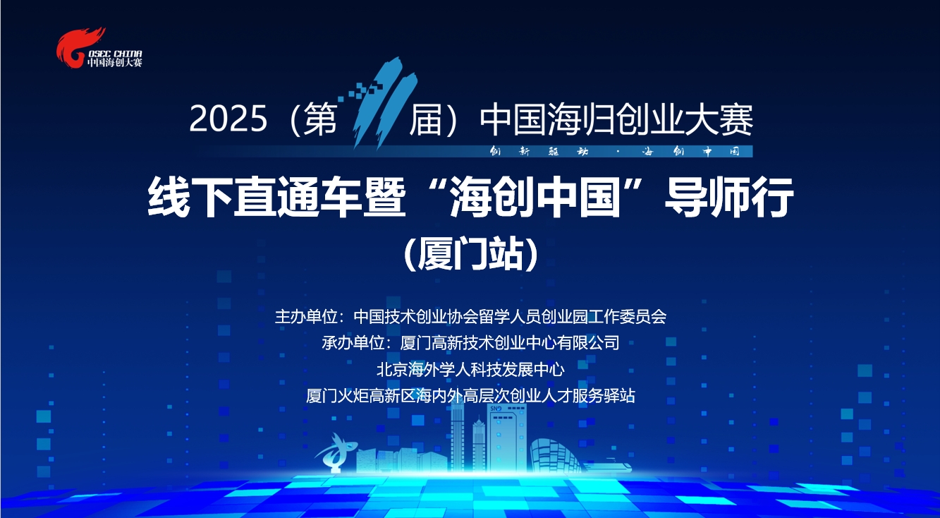 4月24日,2025(第11屆)中國(guó)海歸創(chuàng)業(yè)大賽線下直通車暨“海創(chuàng)中國(guó)”導(dǎo)師行(廈門站)活動(dòng)在廈門高新技術(shù)創(chuàng)業(yè)中心成功舉辦。本次活動(dòng)由中國(guó)技術(shù)創(chuàng)業(yè)協(xié)會(huì)留學(xué)人員創(chuàng)業(yè)園工作委員會(huì)主辦,廈門高新技術(shù)創(chuàng)業(yè)中心有限公司、北京海外學(xué)人科技發(fā)展中心、廈門火炬高新區(qū)海內(nèi)外高層次人才創(chuàng)業(yè)服務(wù)驛站聯(lián)合承辦。留創(chuàng)園工委會(huì)產(chǎn)業(yè)與投資促進(jìn)部部長(zhǎng)寶玥、江蘇省高新技術(shù)創(chuàng)業(yè)服務(wù)中心成果轉(zhuǎn)化與產(chǎn)業(yè)發(fā)展服務(wù)部主任張瑋、廈門高新技術(shù)創(chuàng)業(yè)中心有限公司副總經(jīng)理孫瑞彬等大賽主辦和聯(lián)合主辦方、活動(dòng)承辦方代表出席。