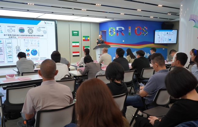 7家聚焦前沿科技的廈門本地海歸參賽企業(yè)在活動(dòng)現(xiàn)場(chǎng)進(jìn)行了路演,覆蓋腦機(jī)接口、人工智能、生物醫(yī)藥、低空經(jīng)濟(jì)等戰(zhàn)略性新興產(chǎn)業(yè)領(lǐng)域。其中,廈門北洋瑞恒展示“可穿戴腦機(jī)共融心智健康平臺(tái)”,以腦機(jī)交互技術(shù)革新心理健康管理;萊特集盛光學(xué)推出“全功能檢測(cè)萬(wàn)用儀器”,突破高端檢測(cè)設(shè)備國(guó)產(chǎn)化瓶頸;納智殼生物的“基于人工智能的健康管理平臺(tái)”,實(shí)現(xiàn)無(wú)感化健康監(jiān)測(cè);羽擎智能自主研發(fā)“無(wú)人機(jī)高速防撞系統(tǒng)”,填補(bǔ)低空自主避障技術(shù)空白;騰基醫(yī)療的“基于基因編輯晶體管技術(shù)的腫瘤快速篩查”,將檢測(cè)效率提升10倍;博智深度智能的“大模型驅(qū)動(dòng)的群體具身智能模擬器Crowdverse”,賦能現(xiàn)代園區(qū)智慧化運(yùn)營(yíng);立方幻境的“AI人形機(jī)器人醫(yī)學(xué)培訓(xùn)系統(tǒng)”,推動(dòng)智慧醫(yī)療教育變革。