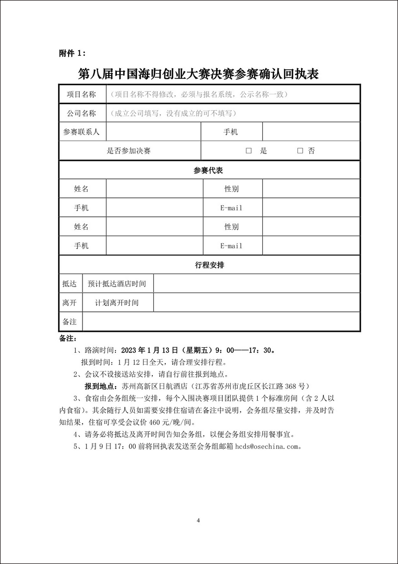 【下載附件】附件1:第八屆中國海歸創(chuàng)業(yè)大賽確認參賽回執(zhí)表