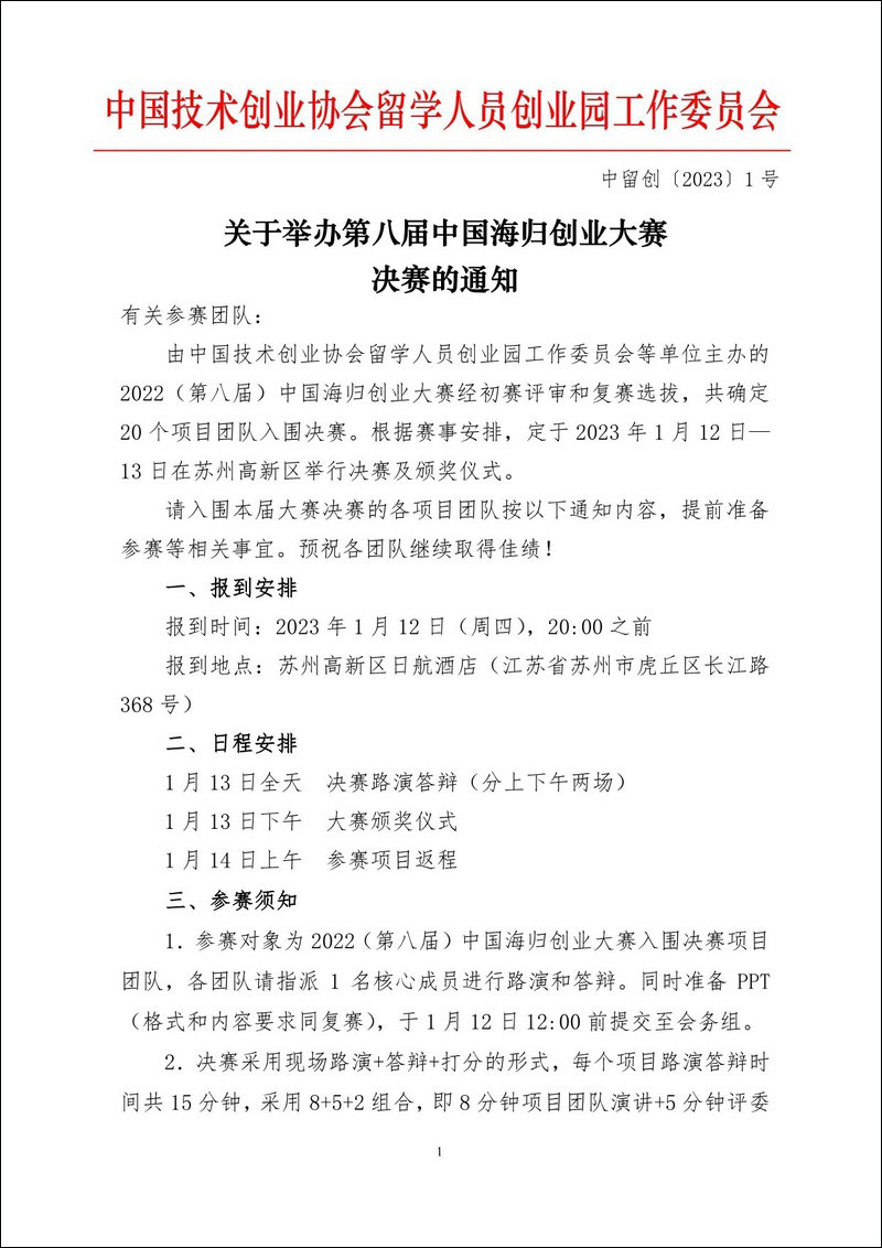 發(fā)文時間:2023-01-06 發(fā)文單位:中國技術(shù)創(chuàng)業(yè)協(xié)會留學人員創(chuàng)業(yè)園工作委員會 中留創(chuàng)〔2023〕1號